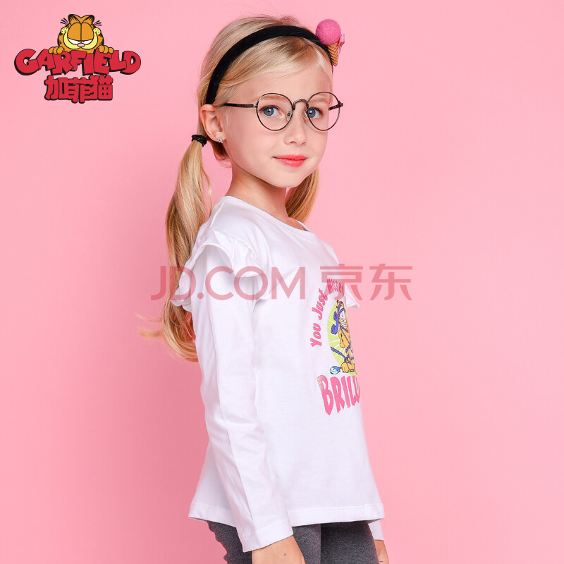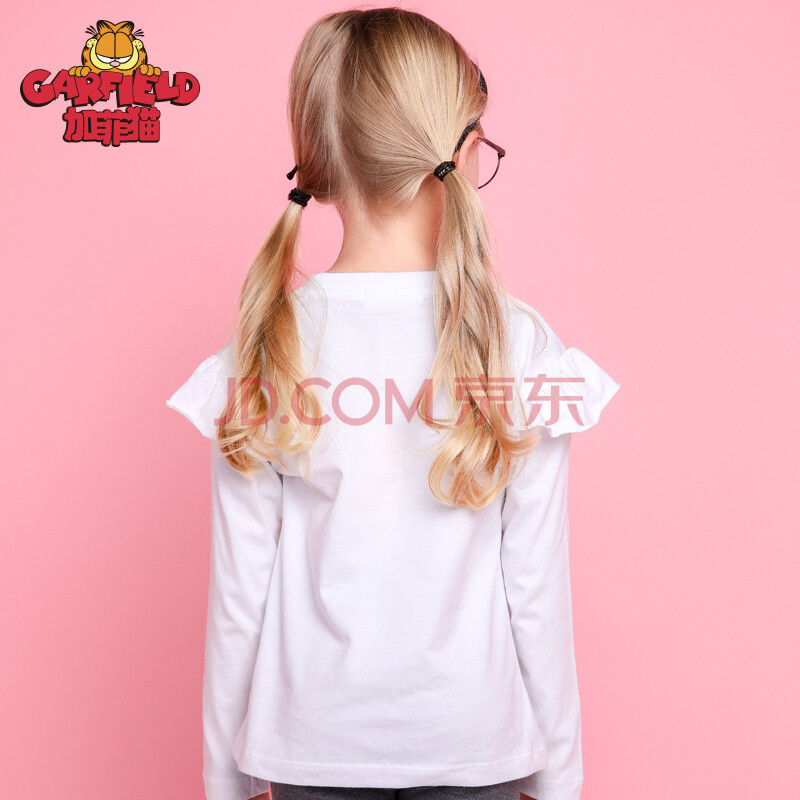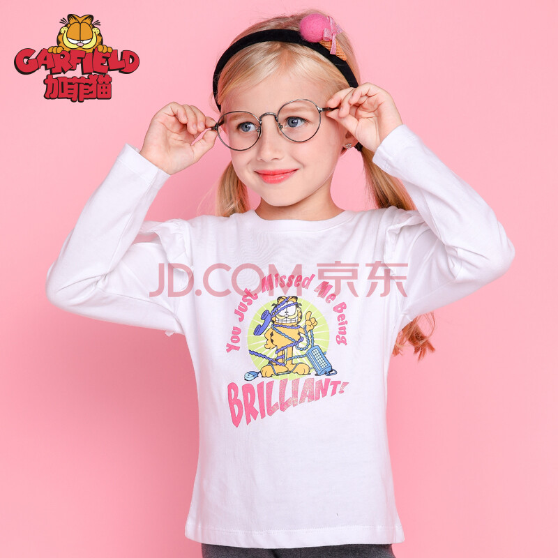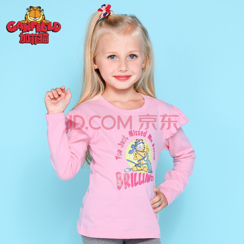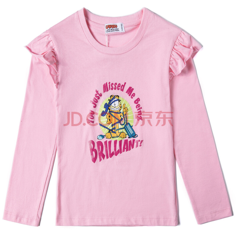 加菲猫童装女童长袖T恤秋装2017新款儿童卡通卫衣女中童打底衫 粉色 110