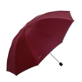 天堂伞三折雨伞3311E1酒红色黑胶升级款防晒拒水一甩干晴雨伞