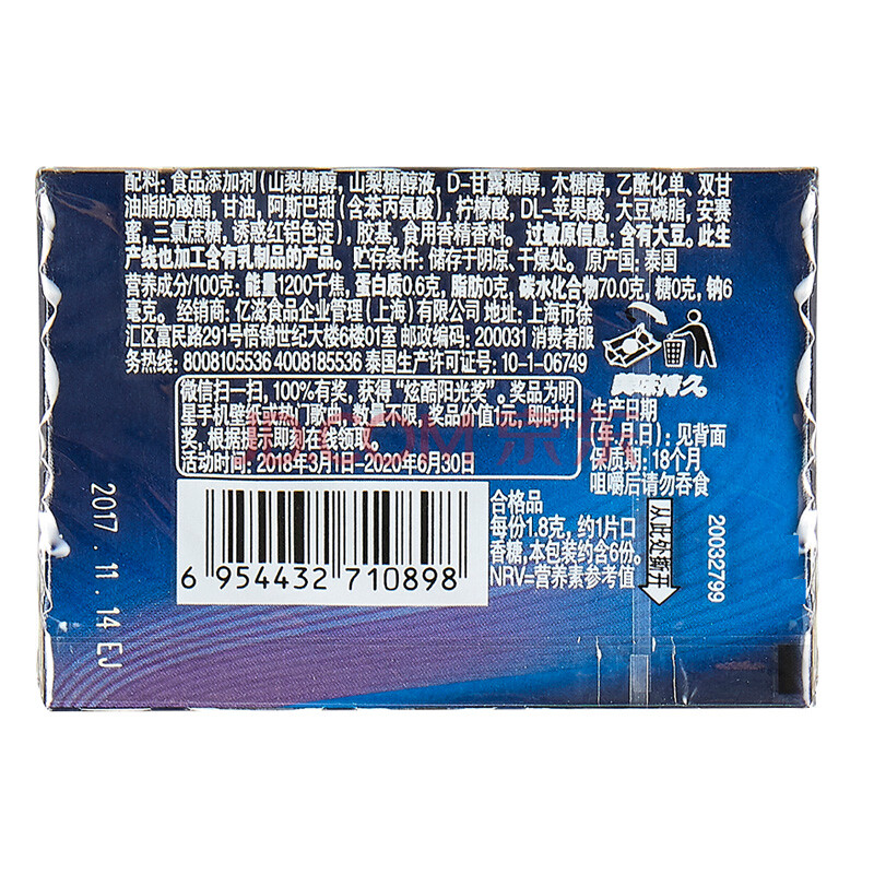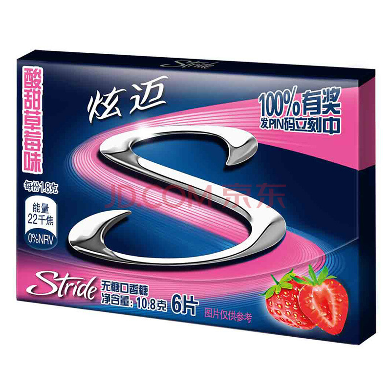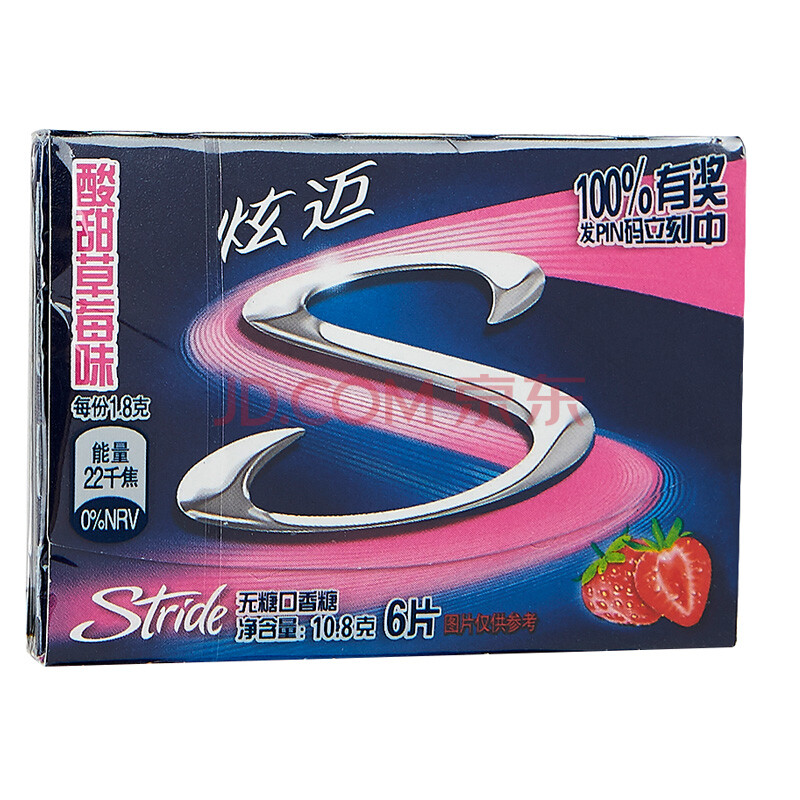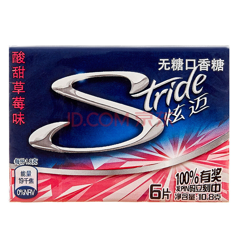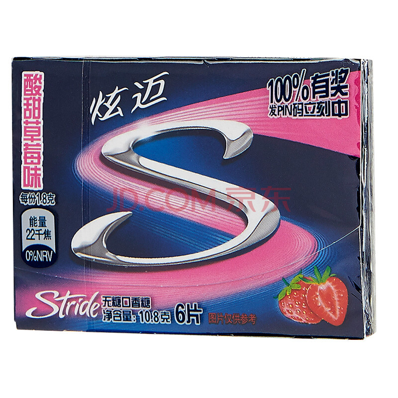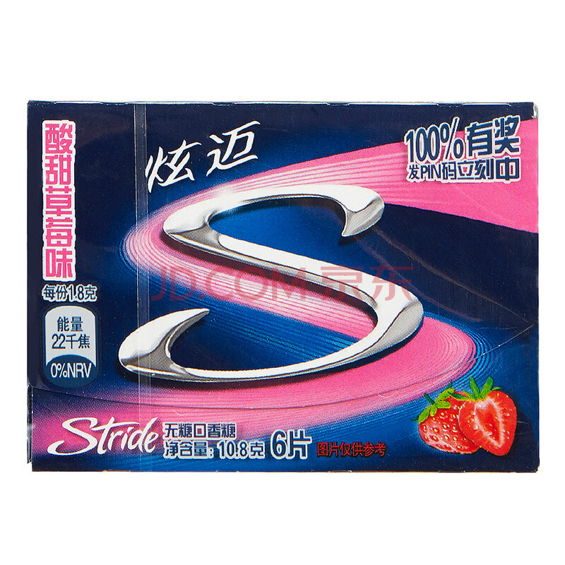炫迈(Stride)无糖口香糖酸甜草莓味6片糖果零食10.8g
