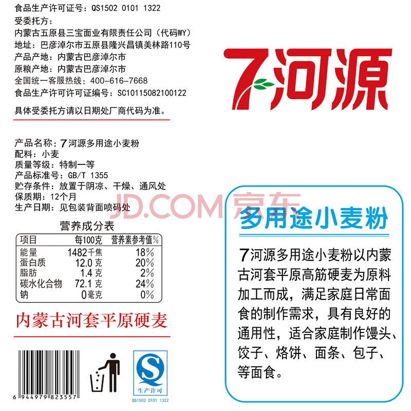 七河源河套面粉 多用途麦芯粉10kg 小麦粉 中筋粉烘焙原料 通用(新老包装交替发货)
