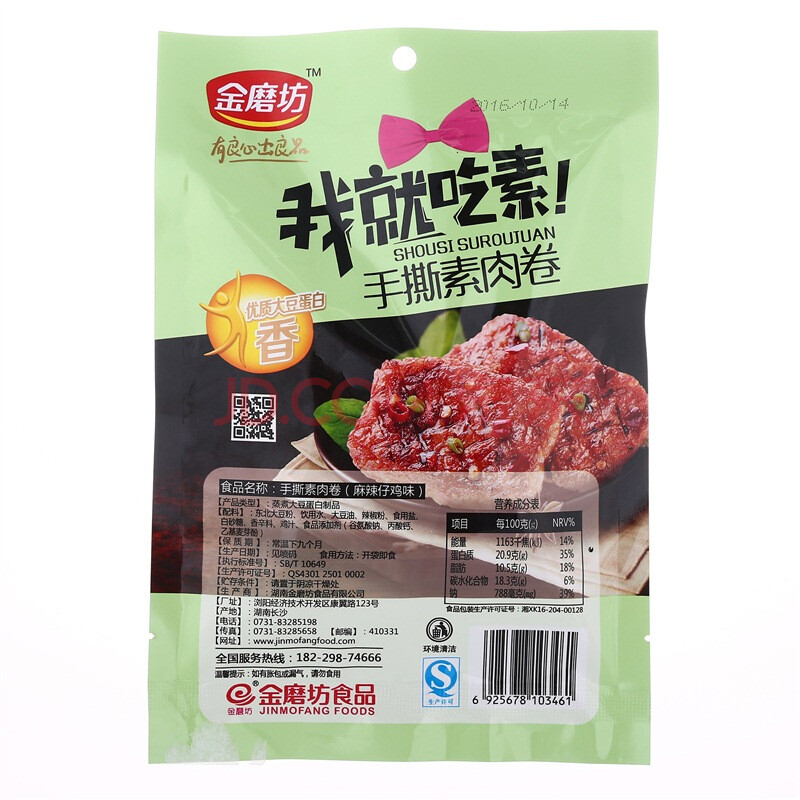 金磨坊 休闲零食 湖南特产 手撕素肉卷 麻辣仔鸡味 90g/袋