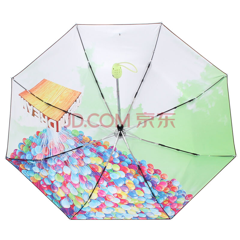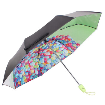 天堂伞 UPF50+自开收全遮光黑胶气球转印三折小黑伞晴雨伞太阳伞 果绿 30138ELCJ