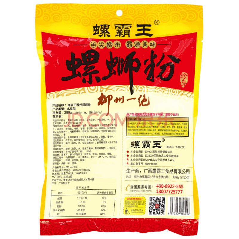 螺霸王 螺蛳粉280g*6 广西柳州特产 (煮食)袋装 方便面粉米线 速食 6袋礼盒装