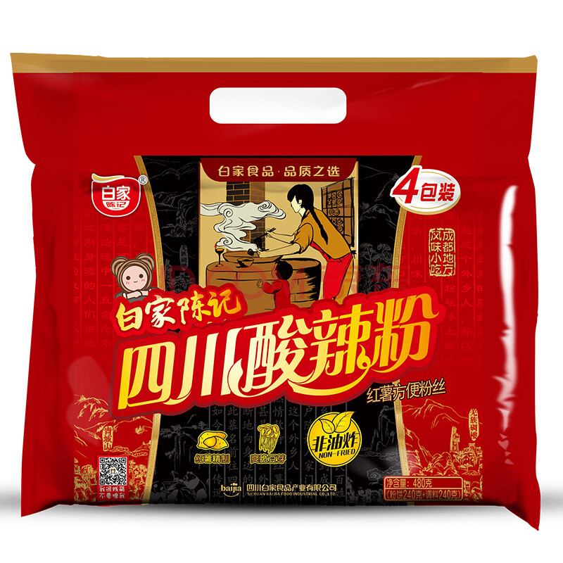 白家陈记 四川酸辣粉四包装 480g 白家方便粉丝 非油炸方便食品