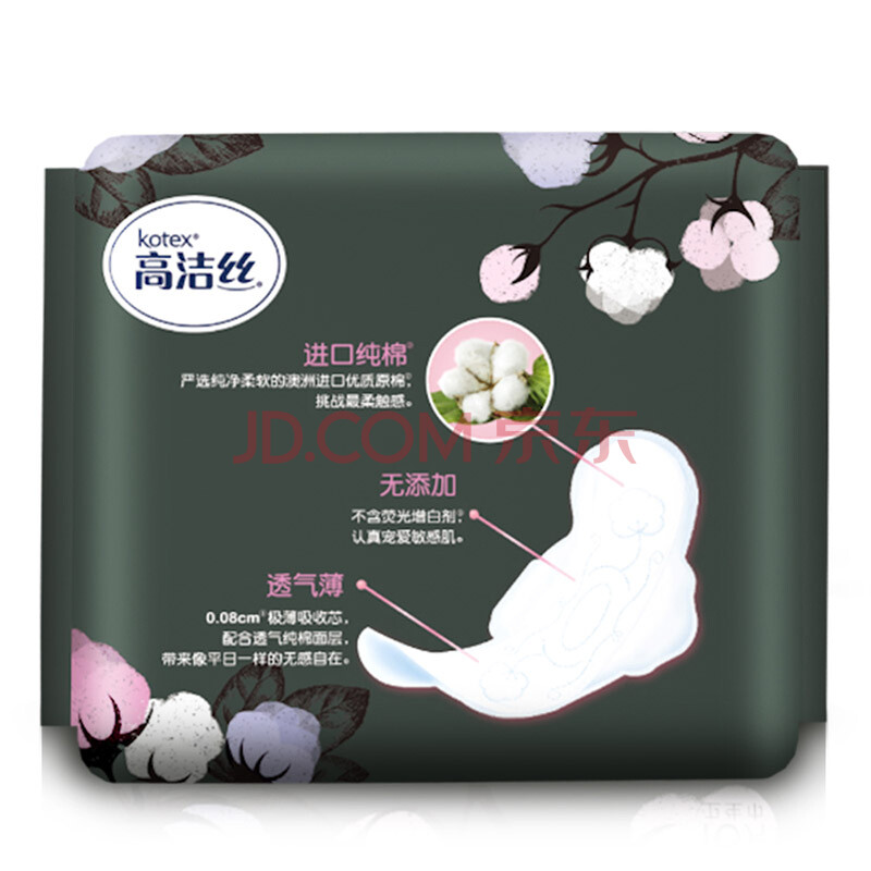 高洁丝(Kotex)臻选系列极薄纯棉卫生巾日用240mm16片装