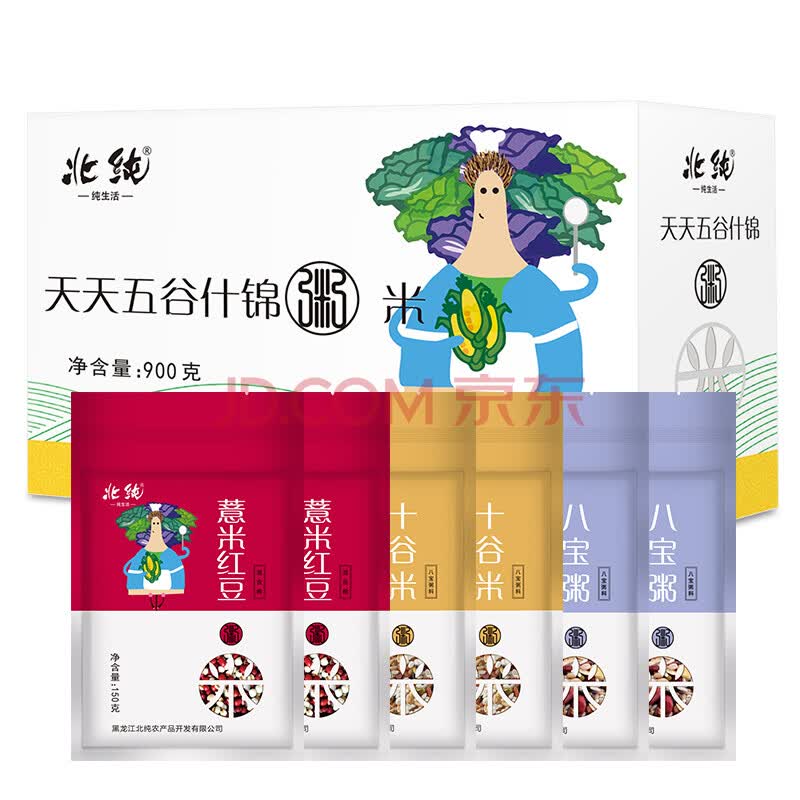 北纯 天天五谷什锦粥米 900g/盒(150g*6袋)(红小豆薏仁米 十谷粥料 八宝粥料等杂粮 大米伴侣 真空包装)