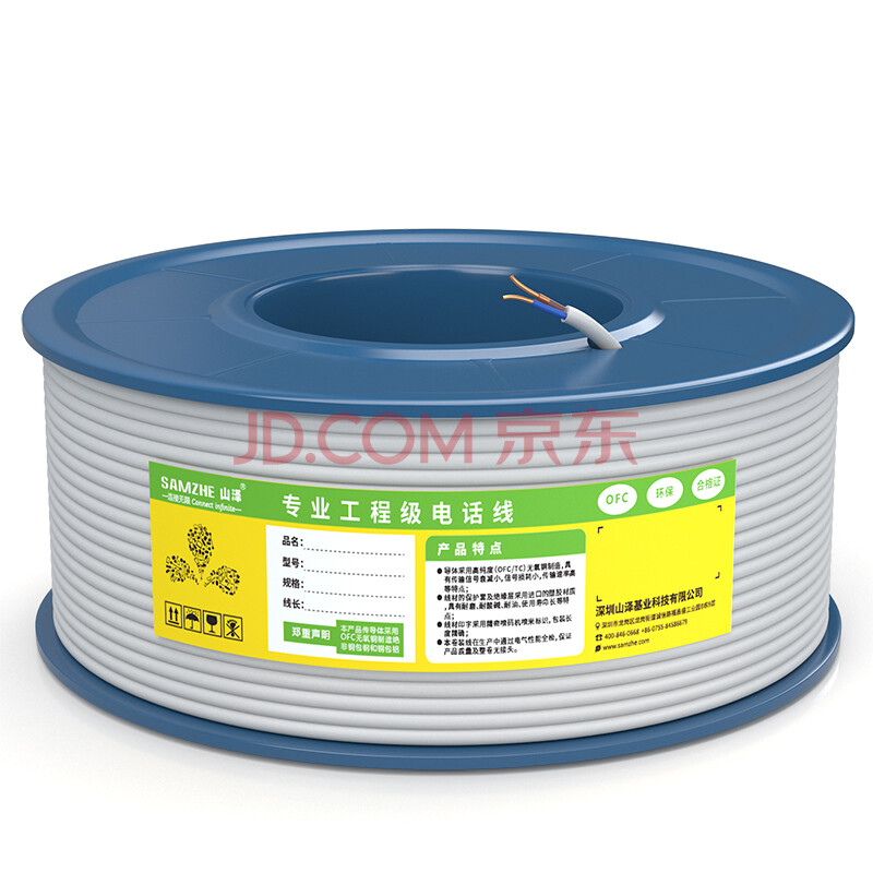 山泽(SAMZHE)C28BWG-205C 2芯单股纯铜电话线 语音跳线 座机延长线连接线 成品电话线带水晶头 5米