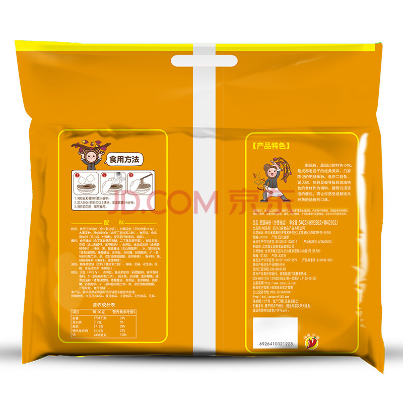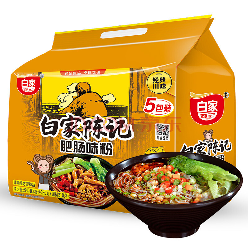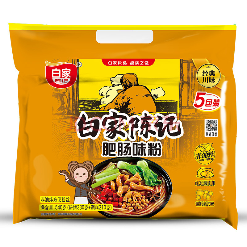 白家陈记 辣味肥肠味方便粉丝五包装 白家肥肠粉 袋装粉丝 非油炸方便食品 540g