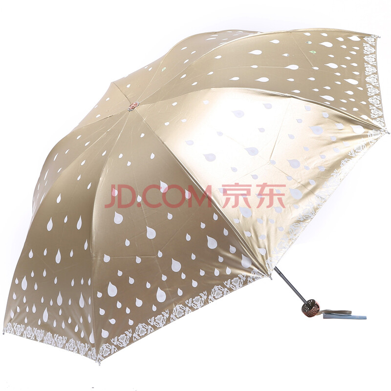天堂伞 (UPF50+)遇水变色黒涤彩胶三折太阳伞晴雨伞31810E浅古铜