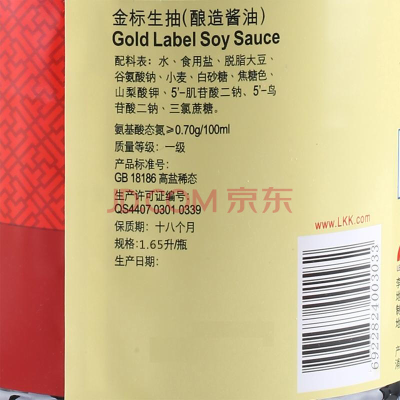 李锦记 金标生抽 一级酿造酱油 1.65L