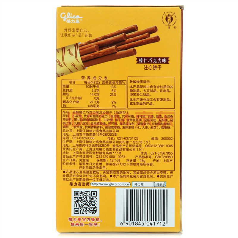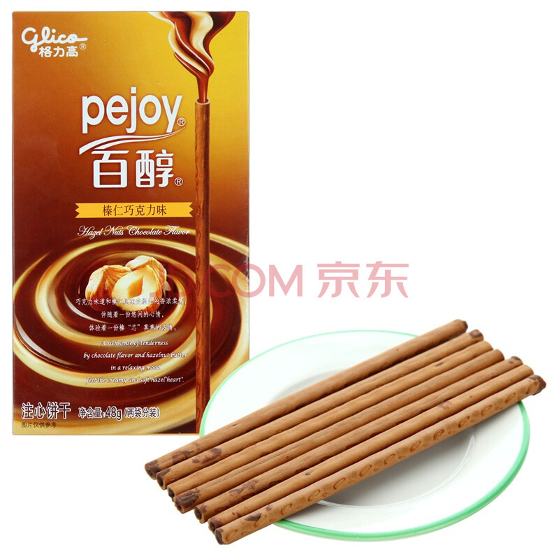 格力高(Glico) 百醇 注心巧克力饼干棒 早餐休闲零食抹茶草莓红酒蛋糕 榛仁巧克力味48g