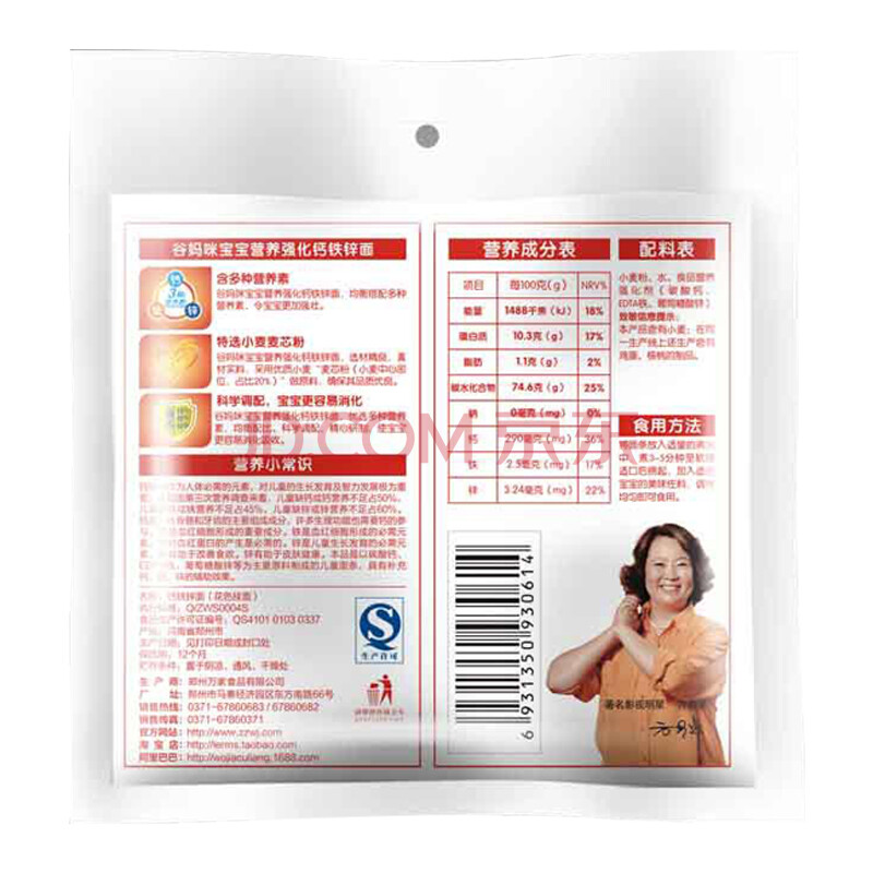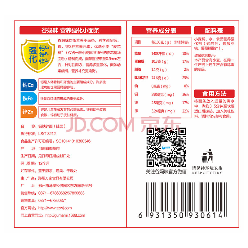 谷妈咪无盐钙铁锌儿童面 宝宝婴幼儿营养辅食小面条(6个月以上适用) 280g
