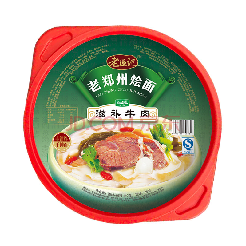 老遂记 方便面 河南烩面 非油炸 老郑州烩面 清真食品 滋补牛肉味 110g 碗装