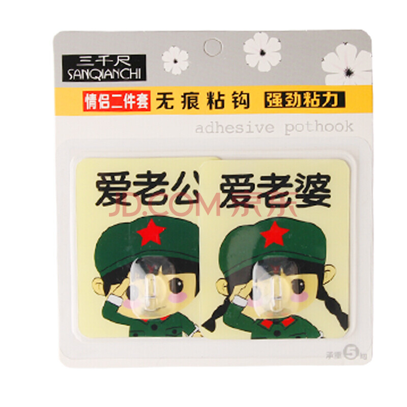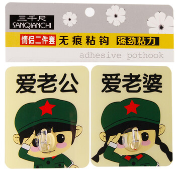三千尺 挂钩贴衣帽钩无痕粘钩情侣二件套 8只4组装