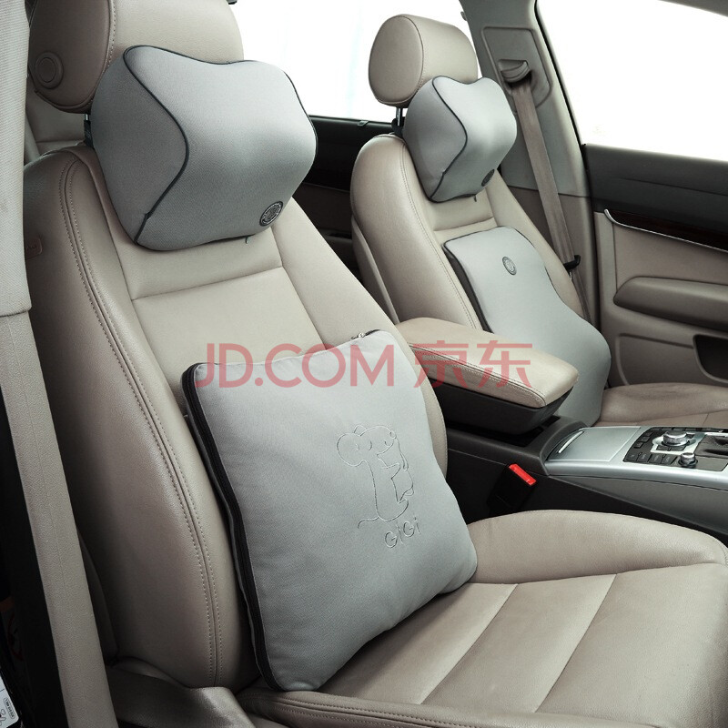 吉吉(GiGi)汽车头枕腰靠 A3太空记忆棉腰靠垫 护颈枕 抱枕被 四件套灰色