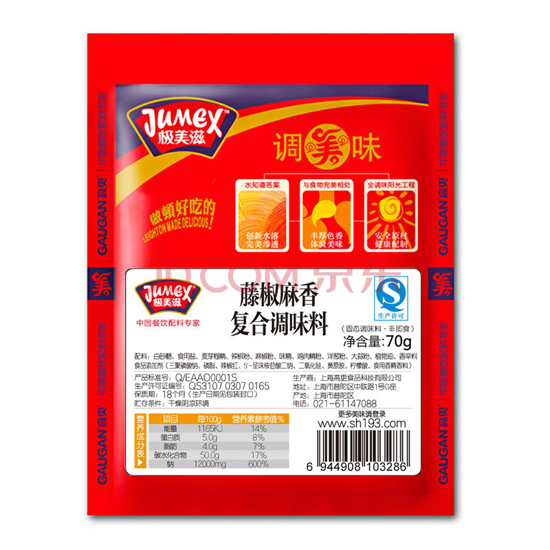 极美滋 藤椒麻香 复合调味料 烤肉腌料 烧烤调料70g*2包