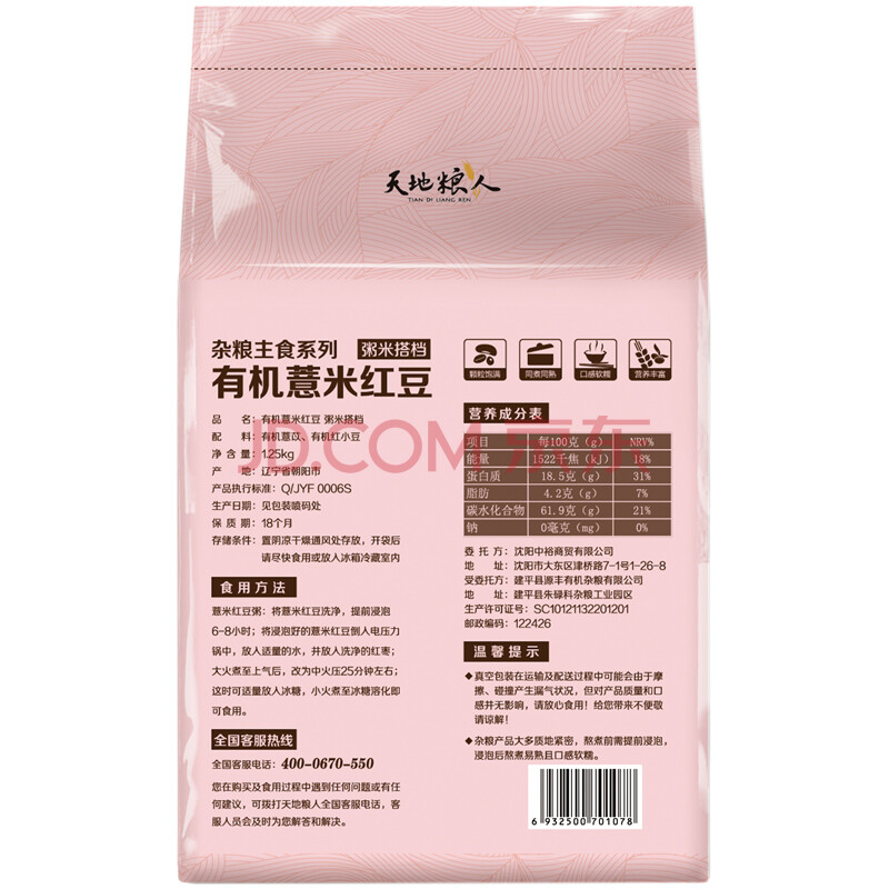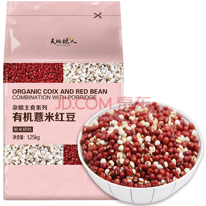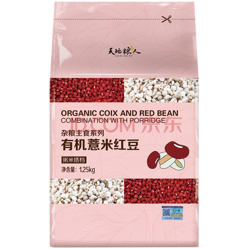 天地粮人 有机 薏米红豆 杂粮粥米搭档1.25kg(薏仁米 红小豆 东北 五谷 杂粮 粗粮 真空装 大米伴侣)