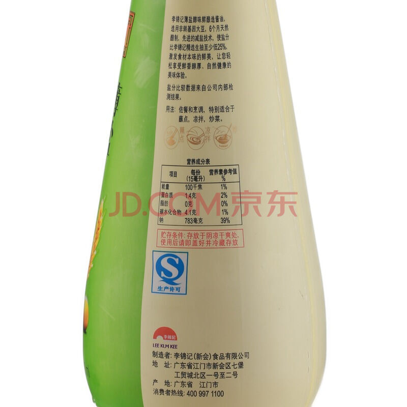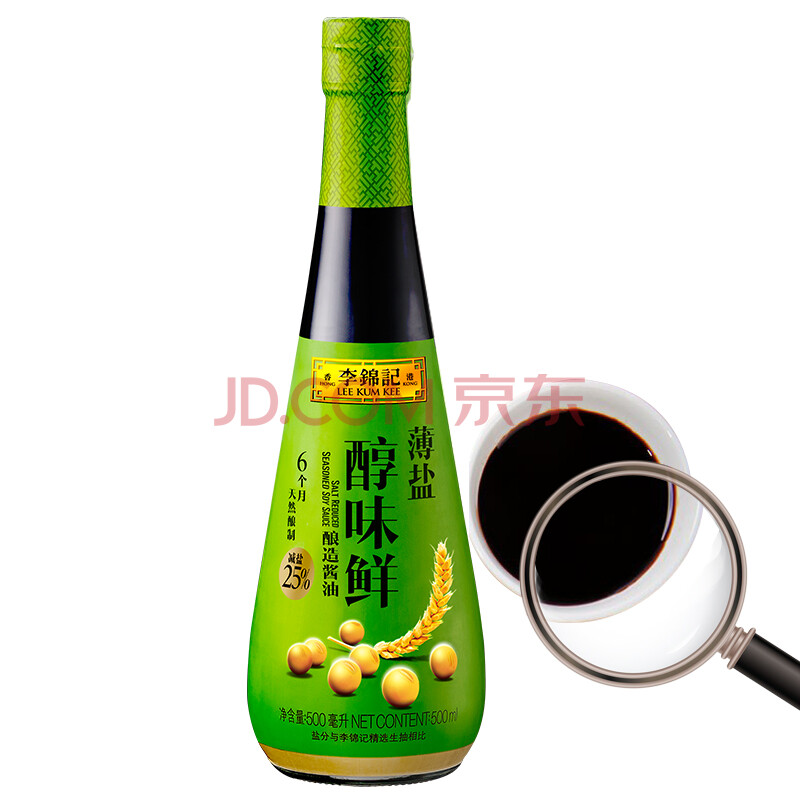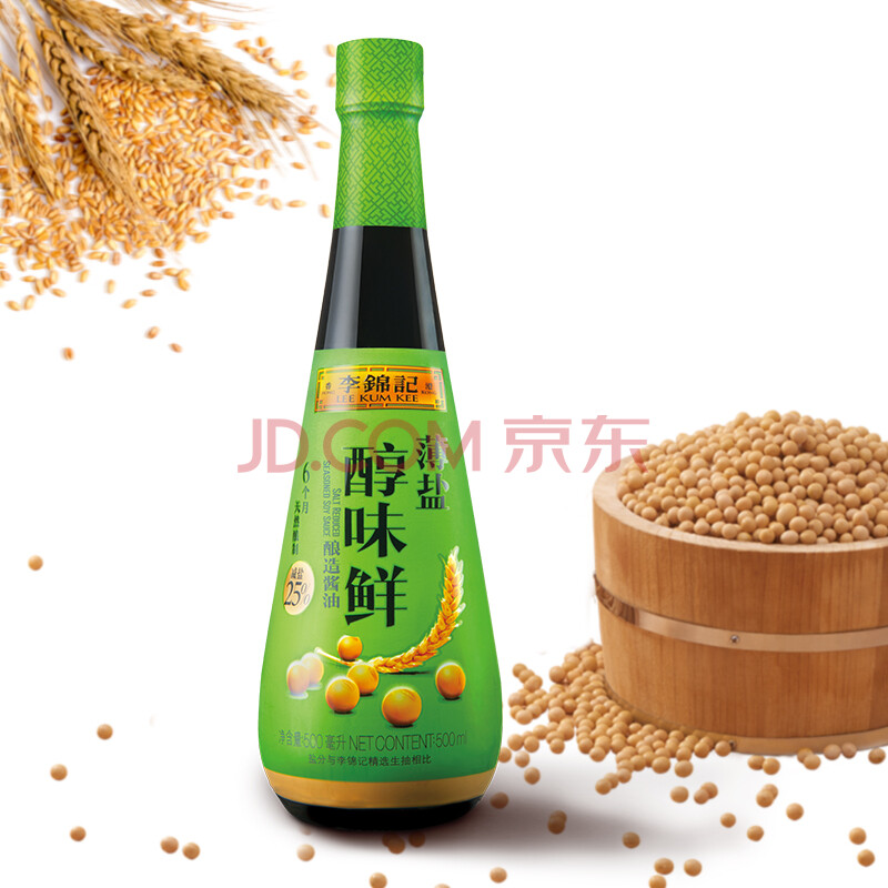 李锦记 薄盐醇味鲜 一级酱油头道少盐淡盐酿造酱油头抽 500ml