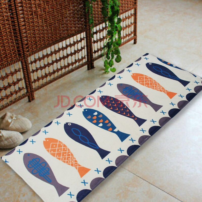 青苇 个性印染 地垫门垫 吸水防滑 浴室厨房脚垫 鱼45*115cm