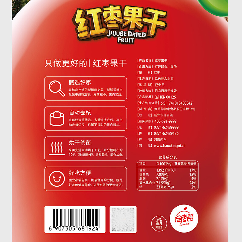好想你 休闲零食 红枣 无核枣片 即食煲汤 红枣果干120g/袋