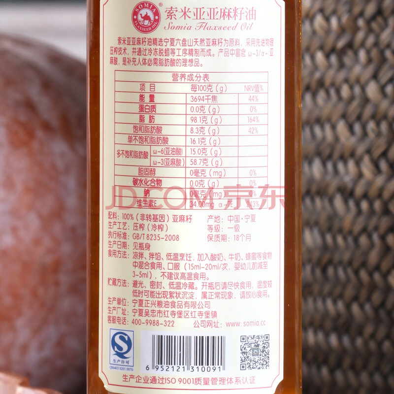 索米亚 亚麻籽油冷榨一级脱蜡月子油食用油 250ml(孕婴专享)