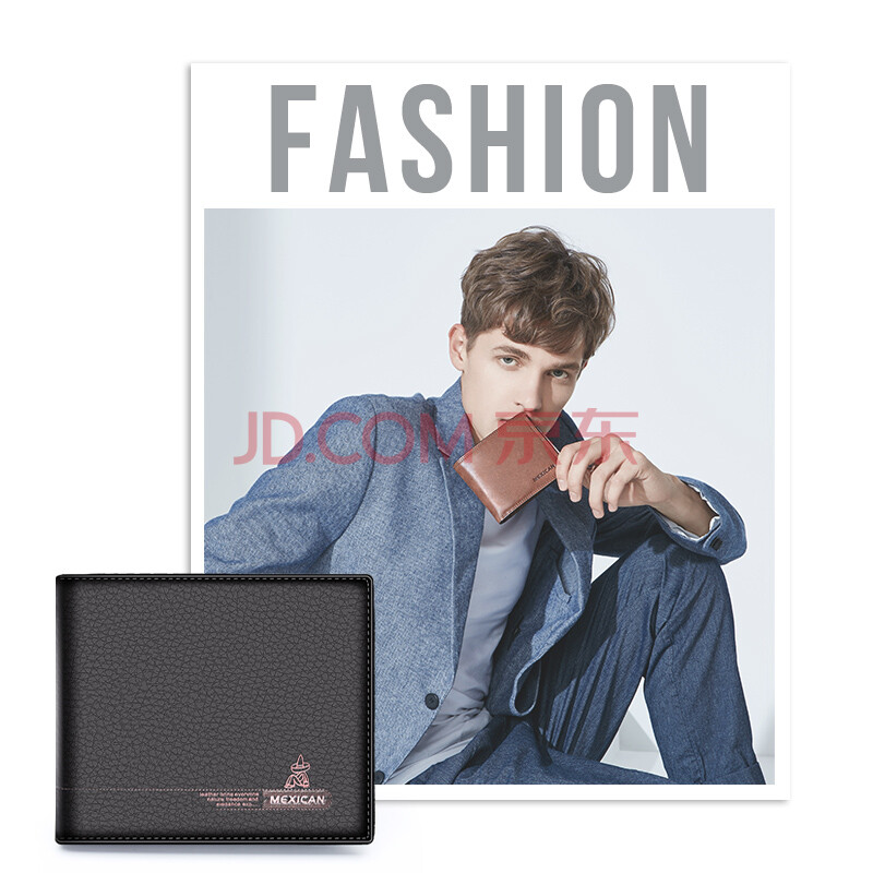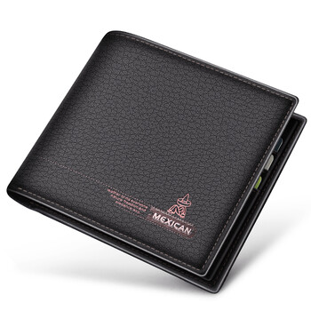 稻草人(MEXICAN)男士钱包男式短款钱夹头层牛皮时尚休闲两折横夹横款啡色30219-03