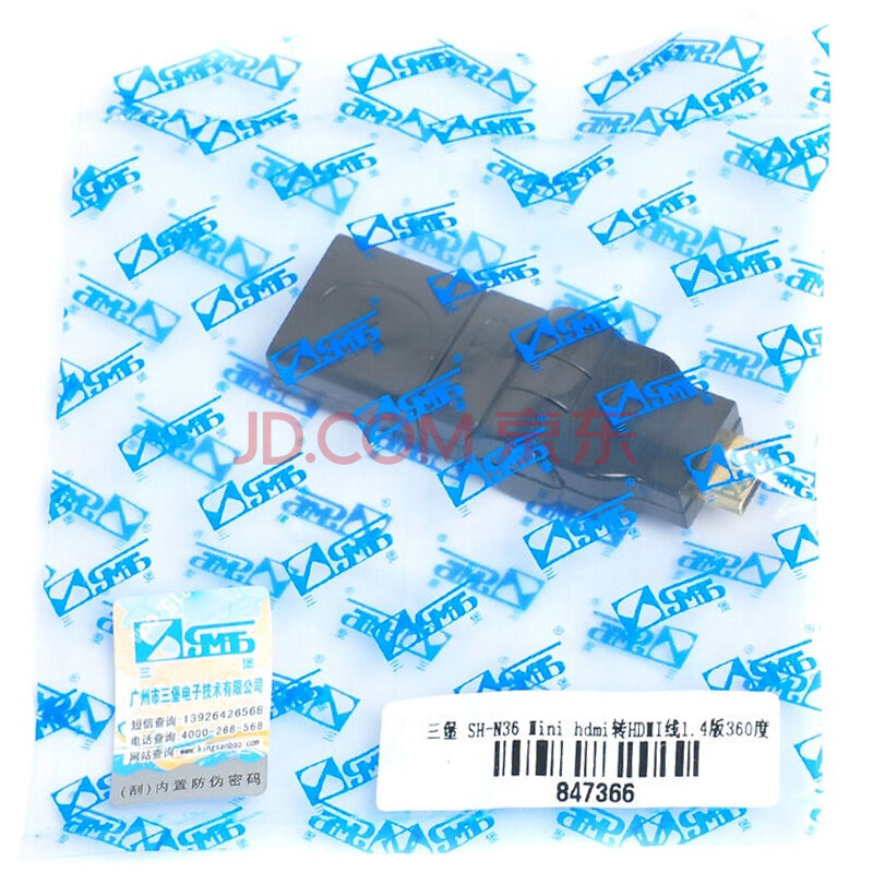 三堡(SANBAO) SH-N36 Mini hdmi转HDMI线 1.4版 360度 接相机平板电脑接电视