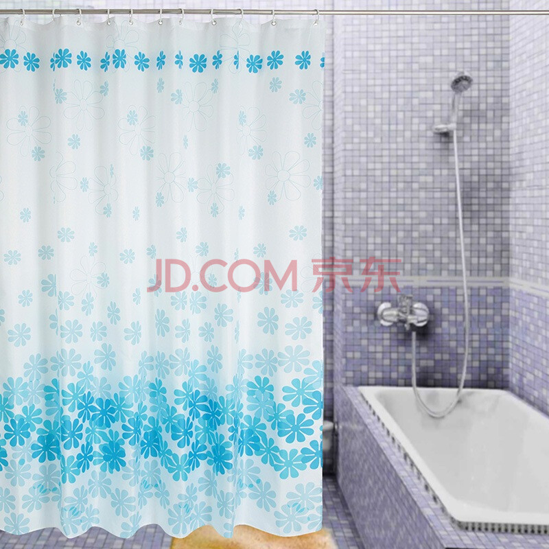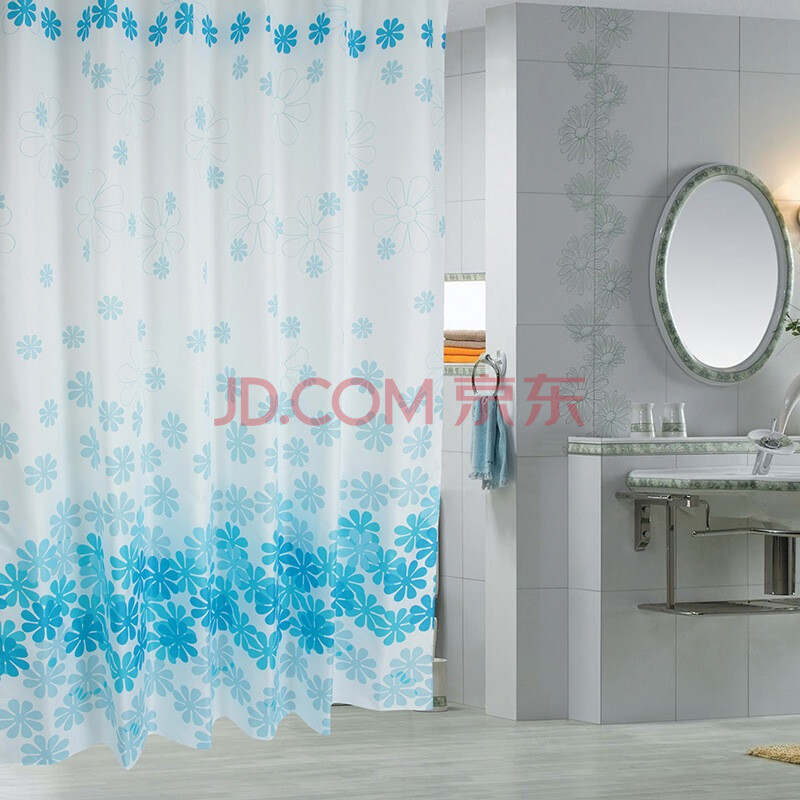 晟旎尚品 防水防霉加厚涤纶面料 浴帘 蓝色花朵 180*200cm