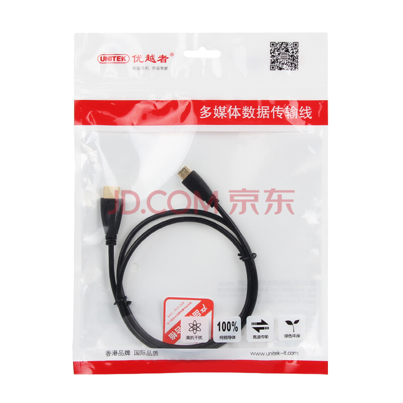 优越者(UNITEK)Mini HDMI转HDMI线 Mini HDMI视频转换线1.5米平板电脑接电视线迷你双向转换高清线黑色Y-C151