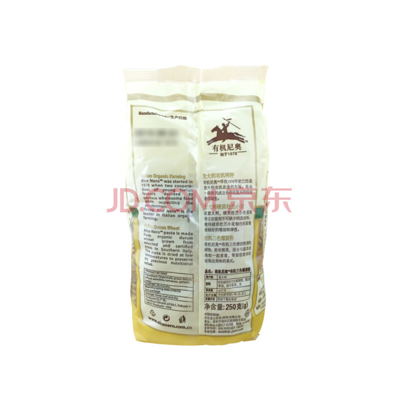 意大利进口 有机尼奥(ALCE NERO)有机三色螺旋粉 250g/袋