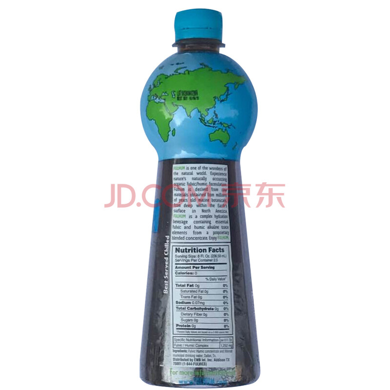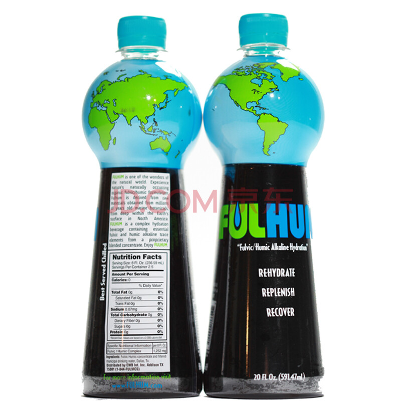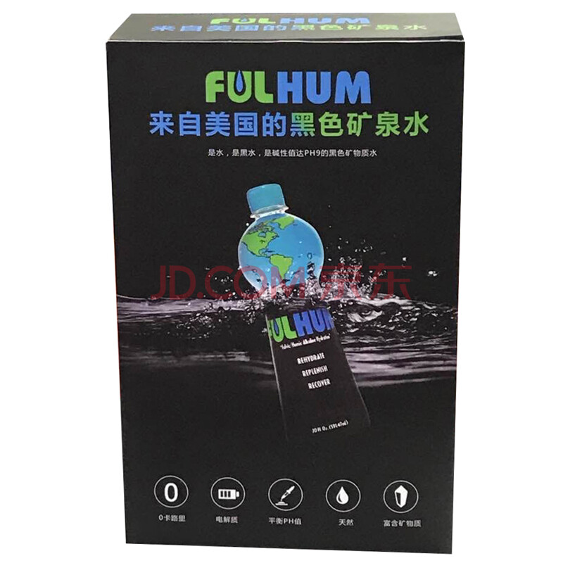 美国进口 富岚海(FULHUM)黑水/黑色矿泉水 0零卡路里 弱碱性的黑色矿物质水 591.47ml*2瓶 两瓶装