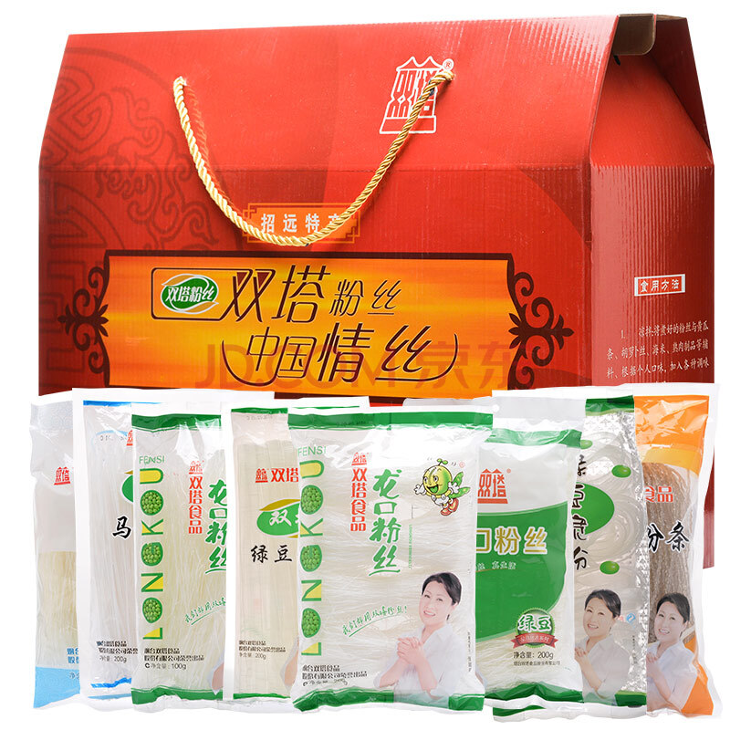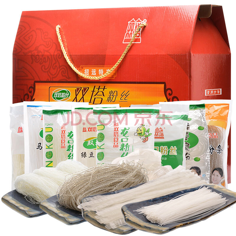 双塔食品 粉丝礼盒 龙口粉丝绿豆方便大宽粉 粉皮绿豆烘干饼 水晶粉丝耐煮火锅酸辣粉1580g