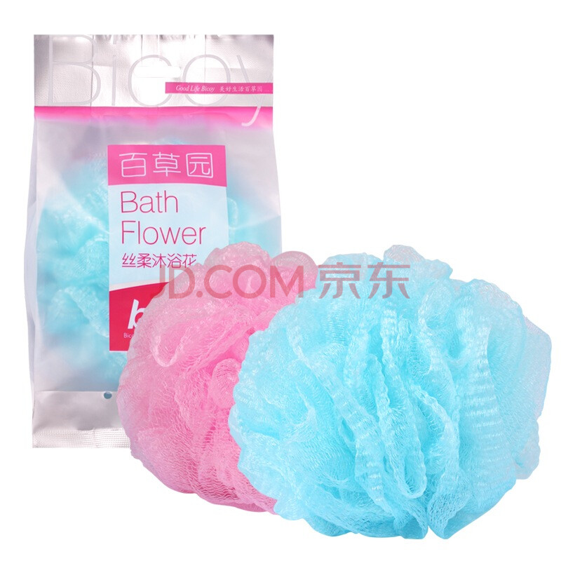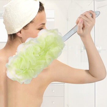 百草园 长柄浴花 浴球 沐浴刷长柄洗澡刷沐浴花沐浴球浴擦背刷+丝柔浴花 2件套 颜色随机