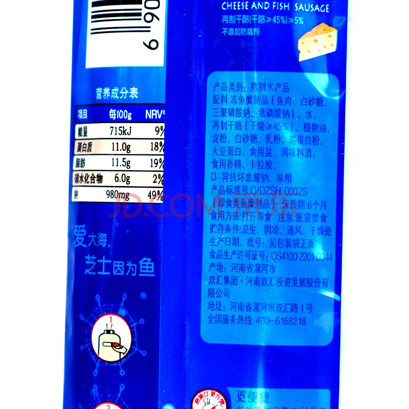 双汇 火腿肠 芝士鱼肉肠 22g*3支 /袋