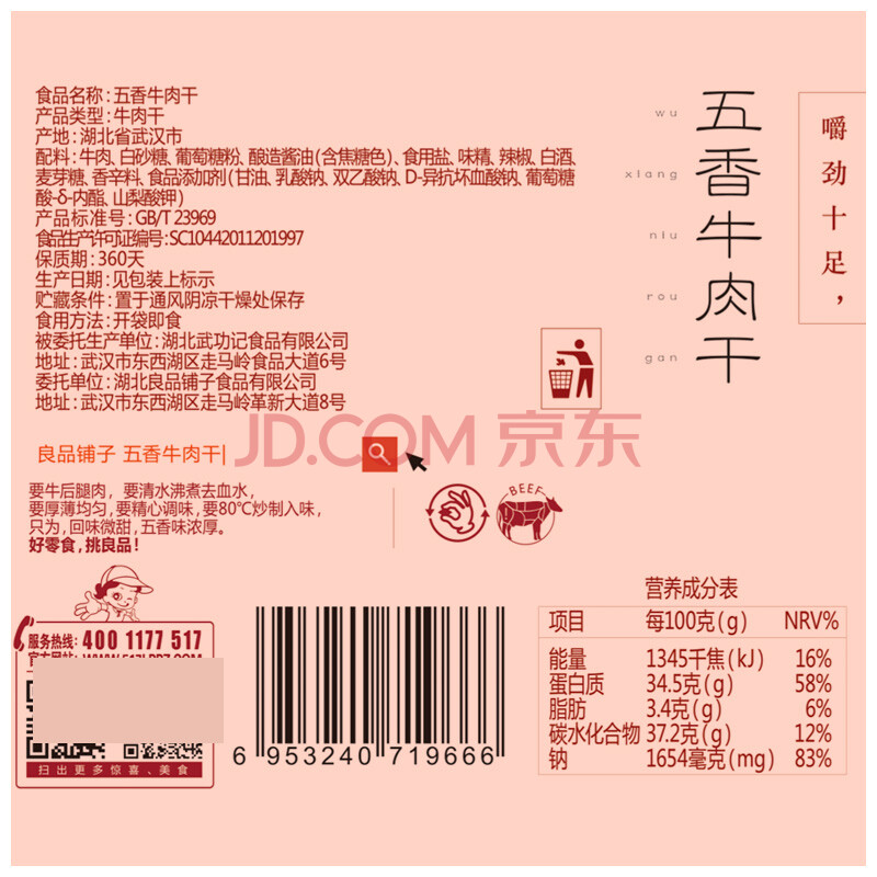 良品铺子 牛肉干 狠辣牛肉片 内蒙古特产小吃 手撕零食80g