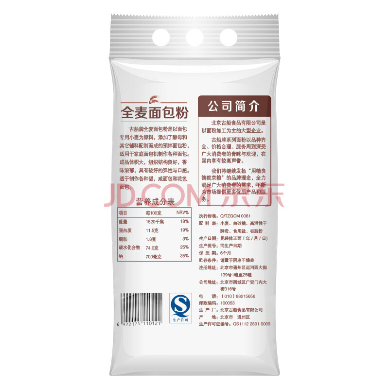 古船全麦面包粉2.5kg