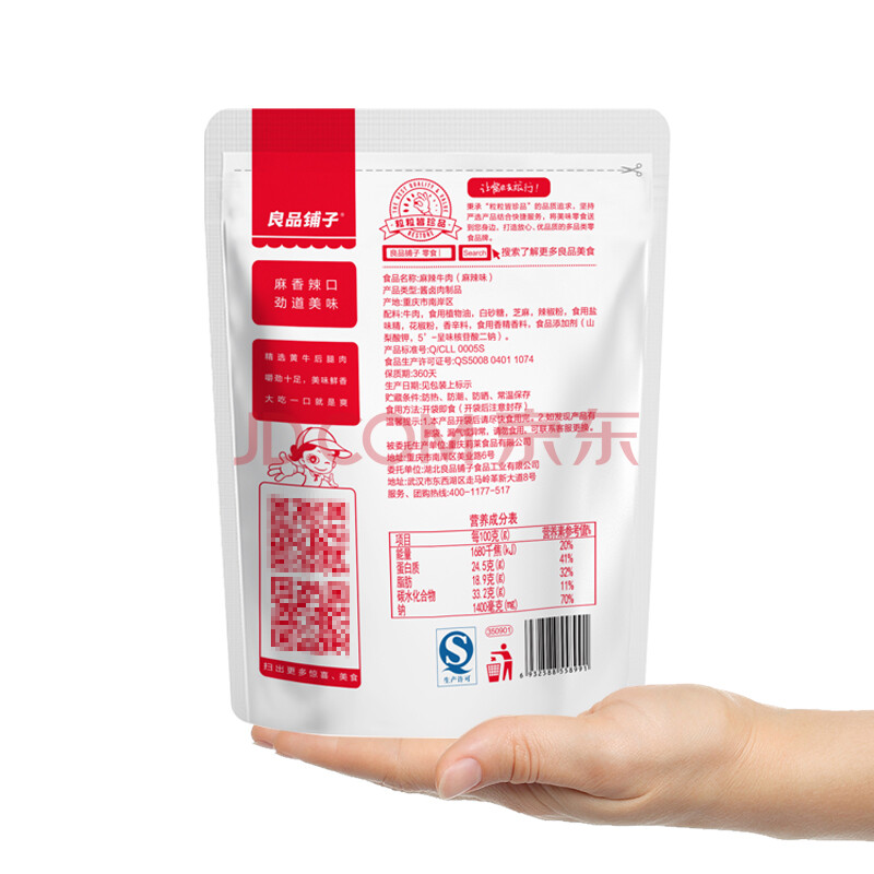 良品铺子 麻辣牛肉干 香辣四川特产 小吃零食小包装165g