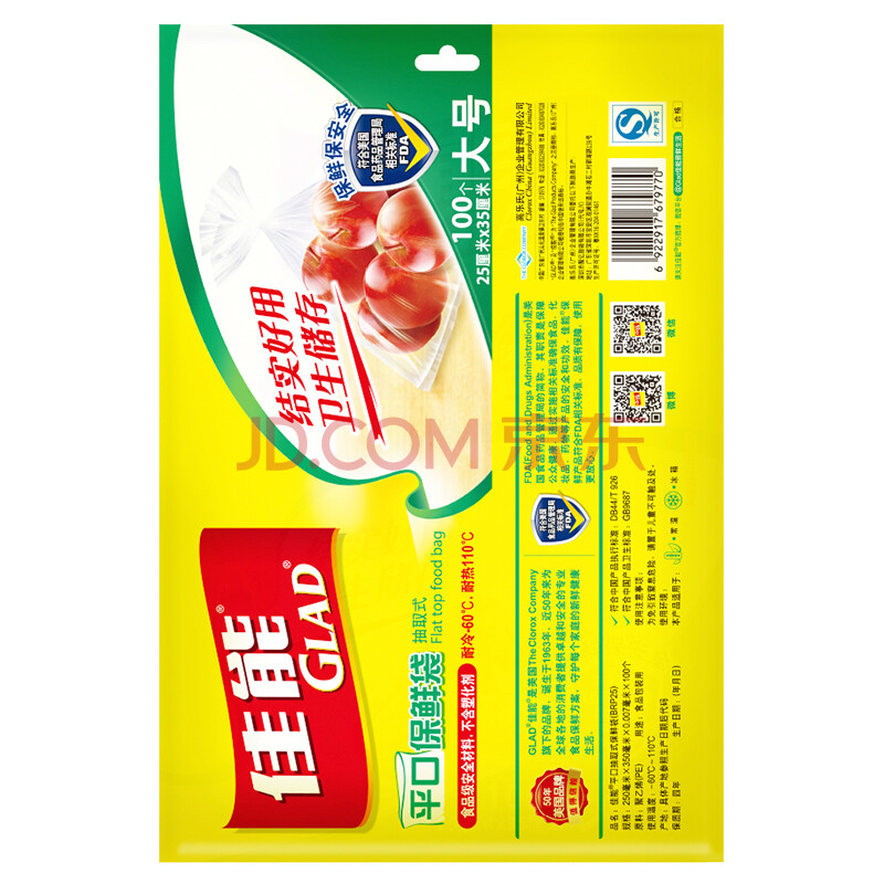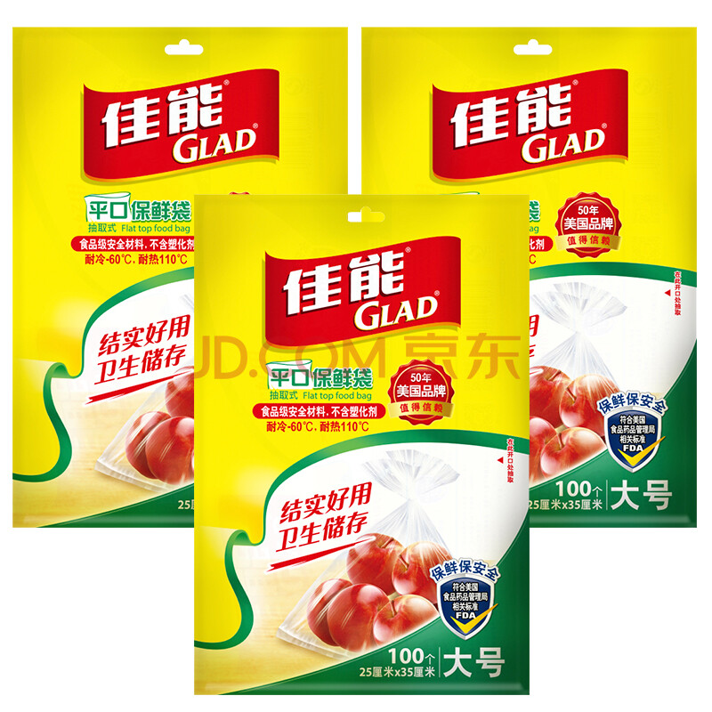 佳能(Glad)平口抽取式保鲜袋食品袋大号3组装 BRP25(25cmx35cm*300个)