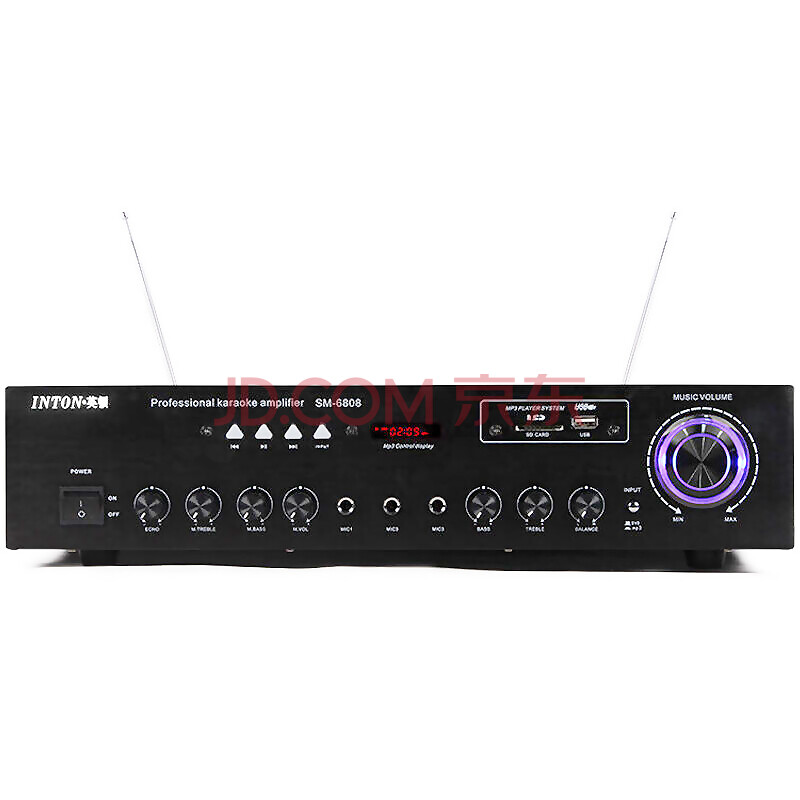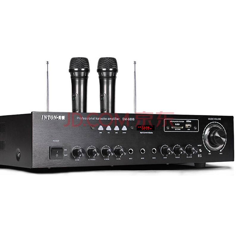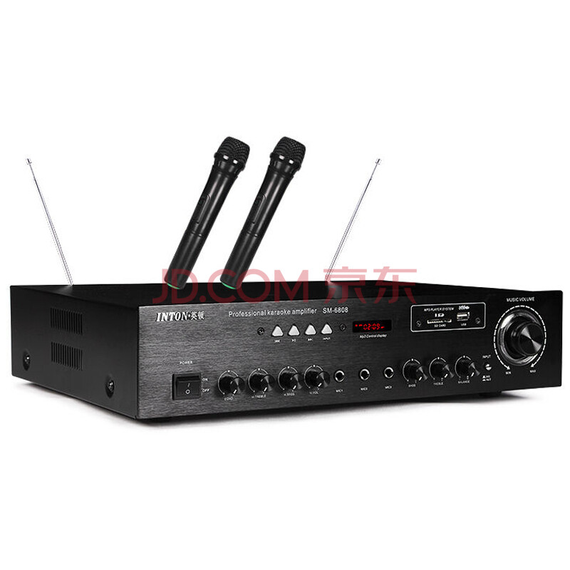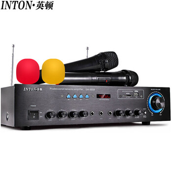 英顿(INTON)SM-6808专业家庭用无线蓝牙ktv音响大功率功放机hifi带双话筒 (黑色)