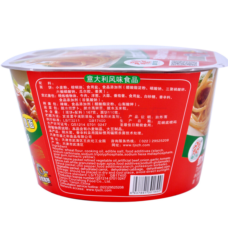 盛之禾 方便面 意大利面 微波速食意面 番茄肉酱面 碗/桶装 167g
