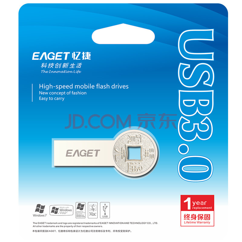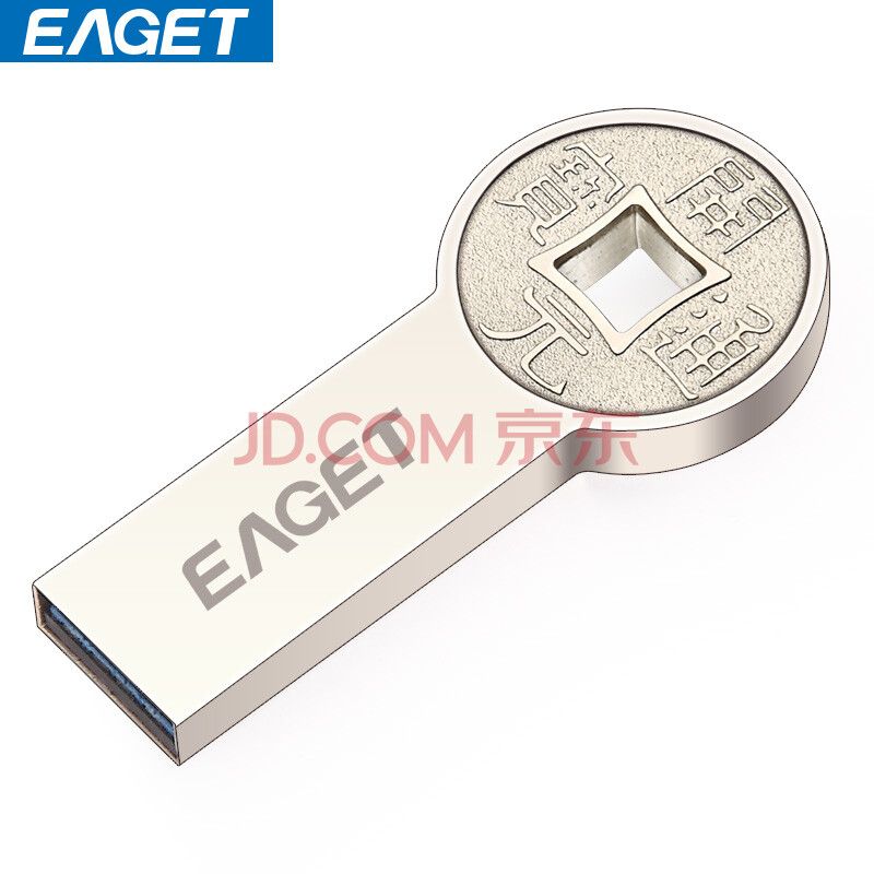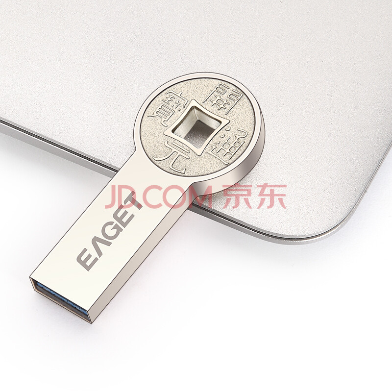 忆捷(EAGET)K80 U盘64G USB3.0高速防水防震全金属货币款珍珠镍色