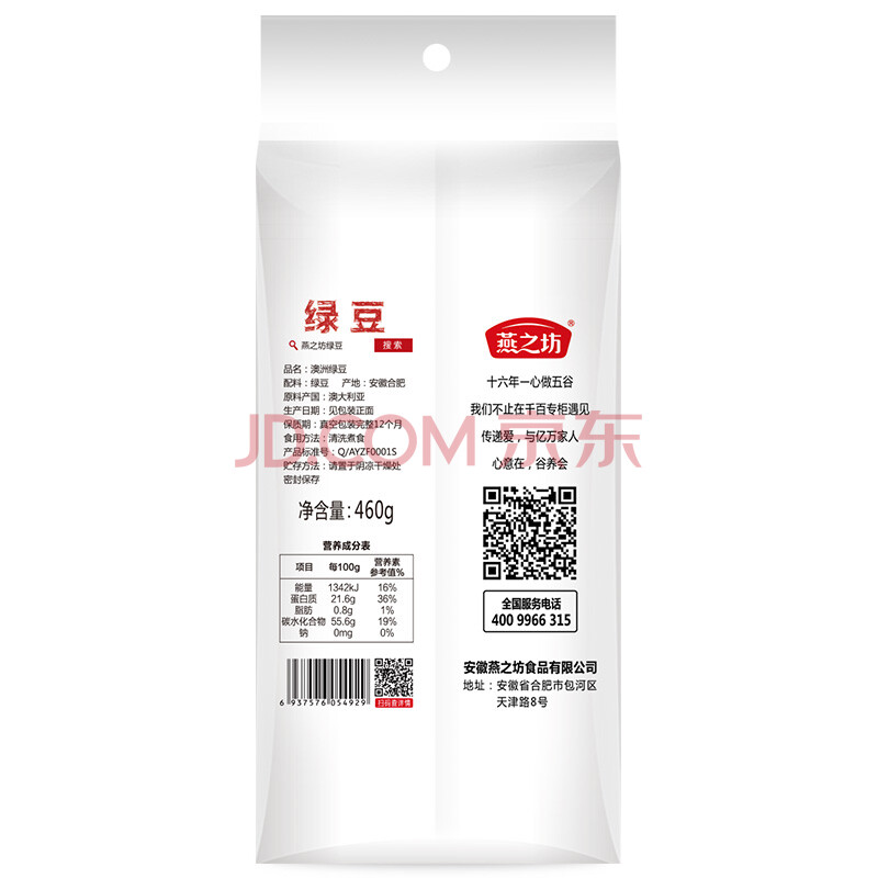 燕之坊 澳洲绿豆 心意系列 杂粮 460g(真空包装)