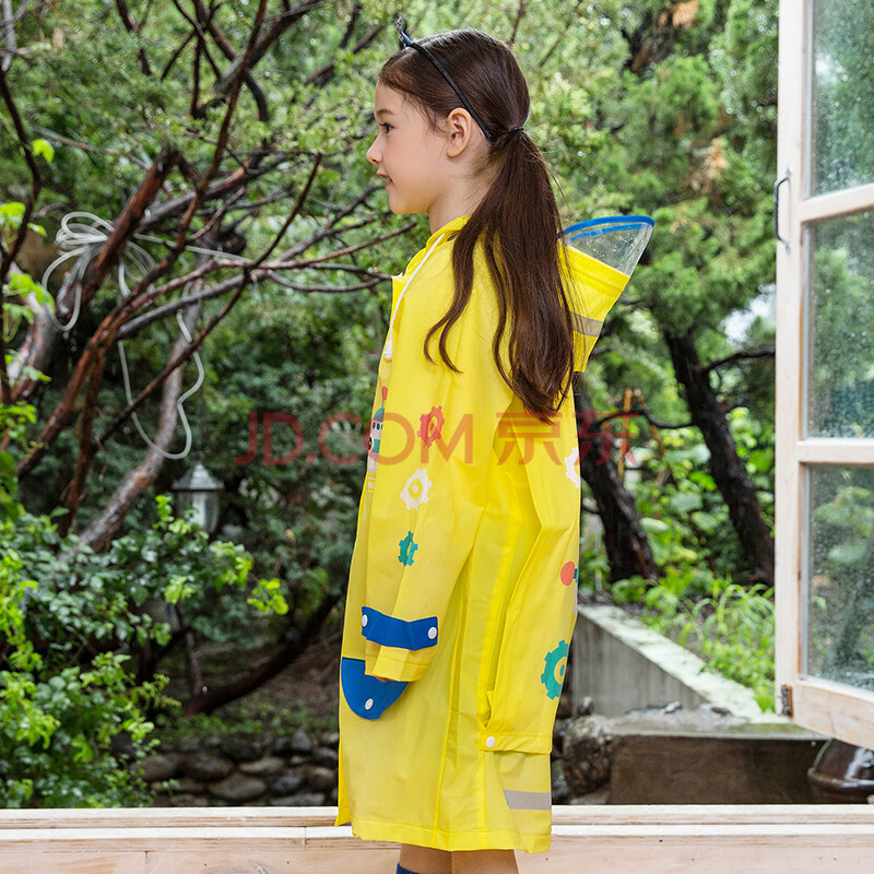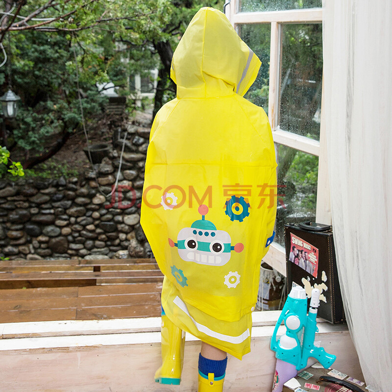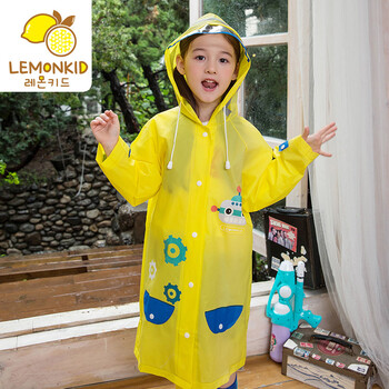 柠檬宝宝lemonkid新款男童女童雨披带书包位宝宝小孩学生雨衣卡通儿童雨衣LE160103黄色收音机雨衣L