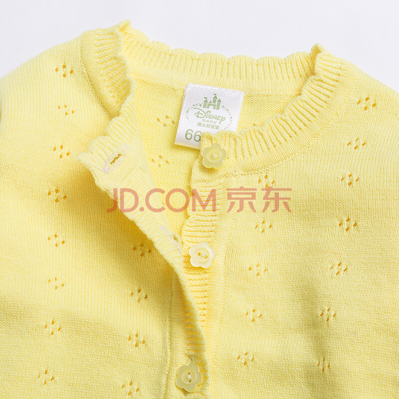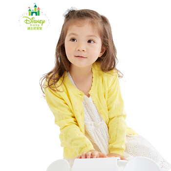 迪士尼(Disney)女童上衣春季女宝宝前开衫甜美提花针织衫171S927 黄色 73cm