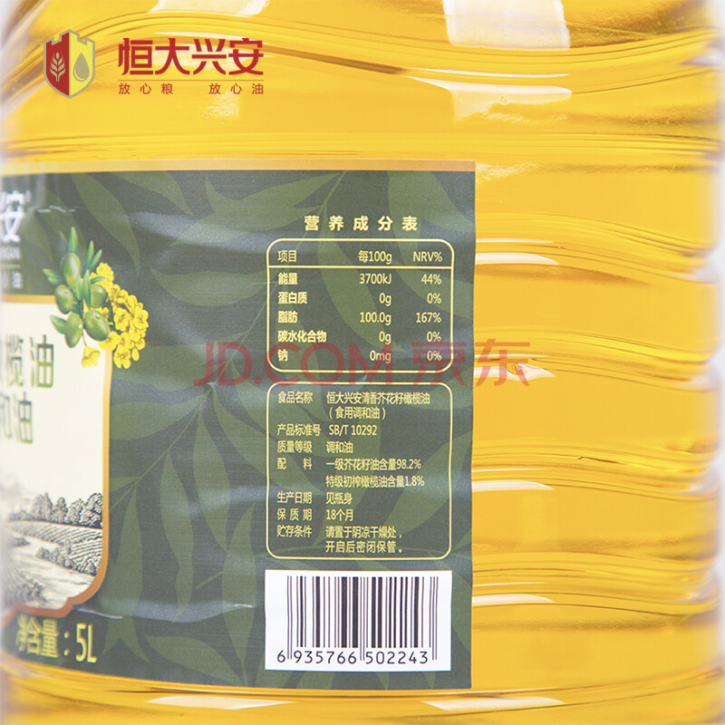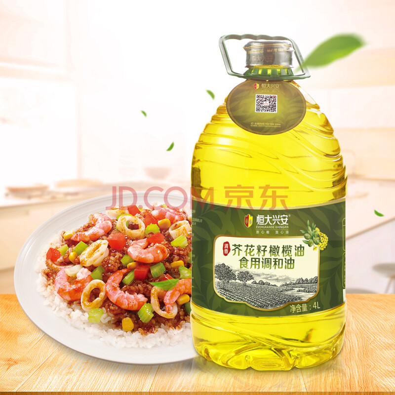 恒大兴安 食用油 清香芥花籽橄榄油 调和油 4L