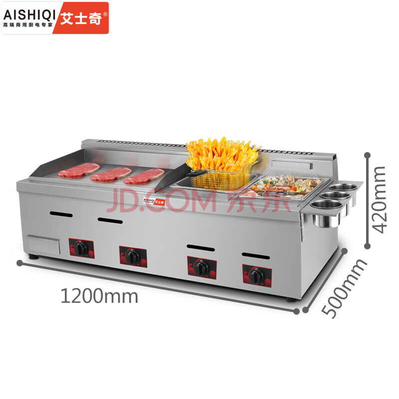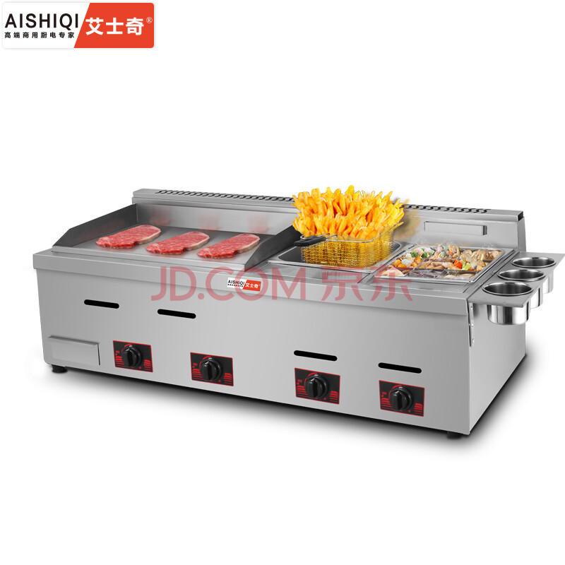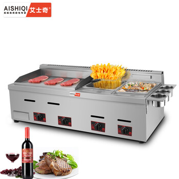艾士奇(AISHIQI)ISQ-720 商用燃气炸炉 扒炉一体机 手抓饼机铁板鱿鱼机器铜锣烧机铁板烧关东煮