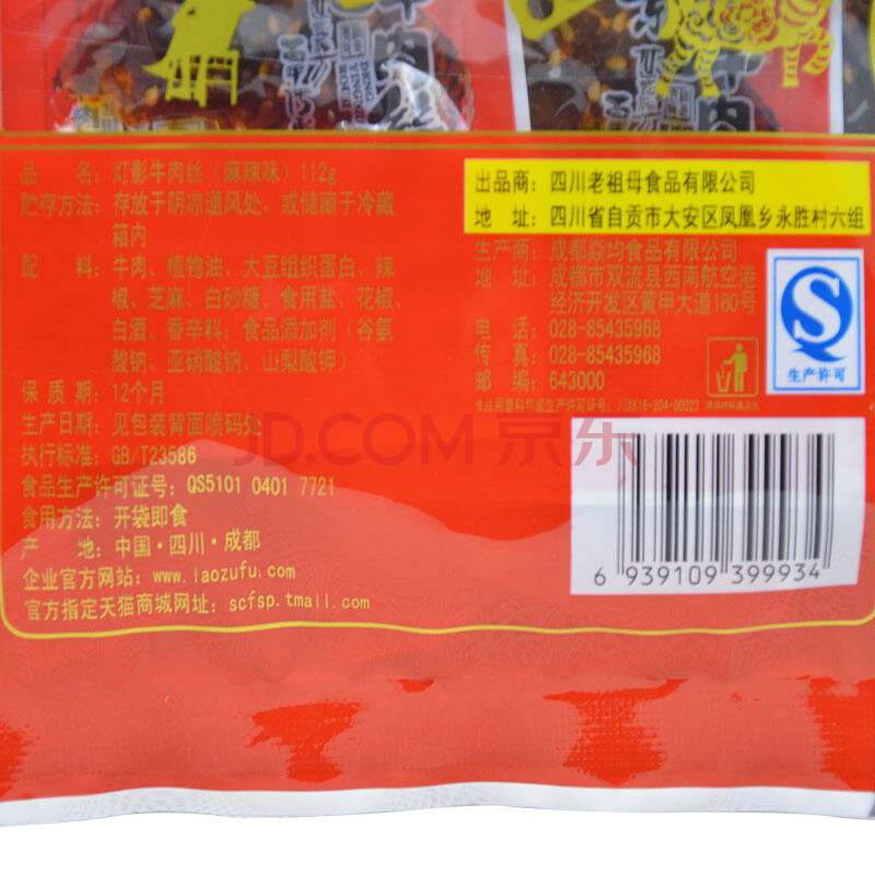 老祖父 灯影牛肉丝 独立包装 麻辣味112g