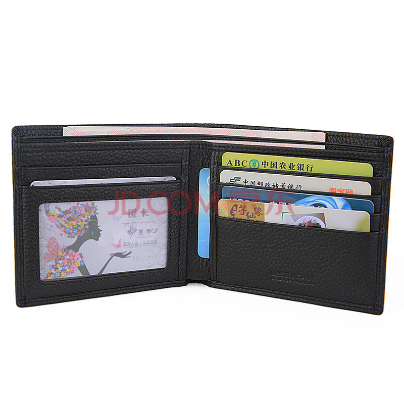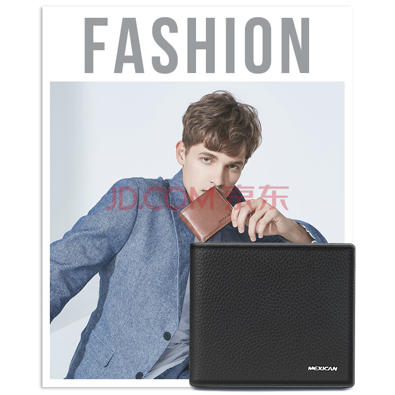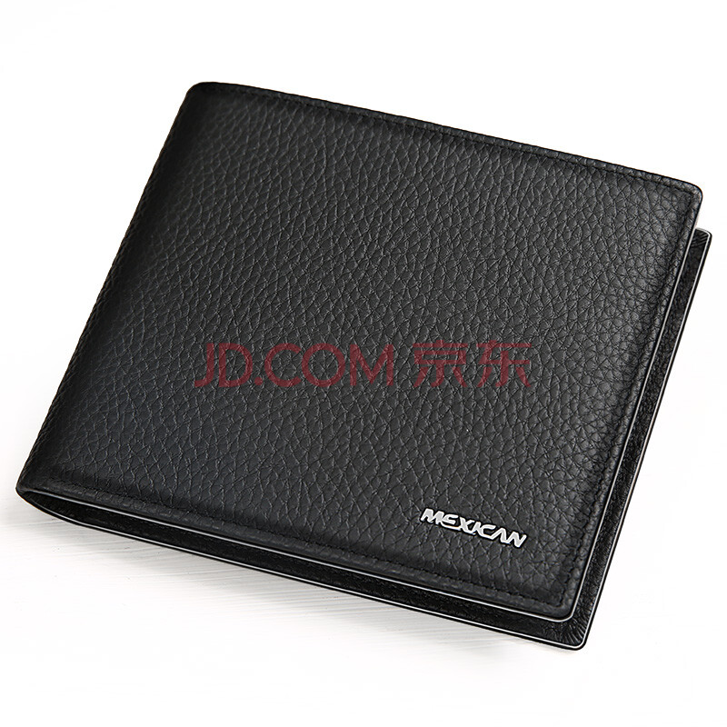 稻草人(MEXICAN)头层牛皮钱包男商务短款牛皮钱夹男士休闲横款票夹MYX30578M-03黑色
