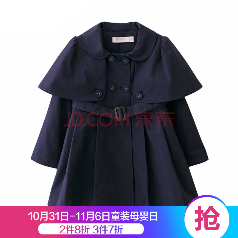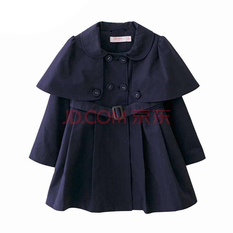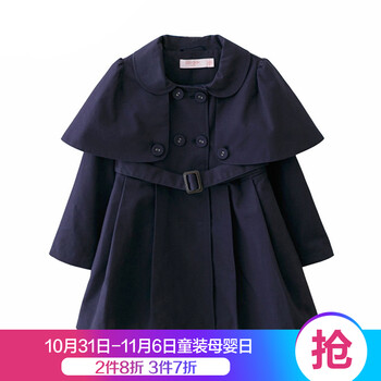 弗萝町Flordeer 法国童装女童风衣中长款儿童外套中大童女外套上衣 藏青色 130