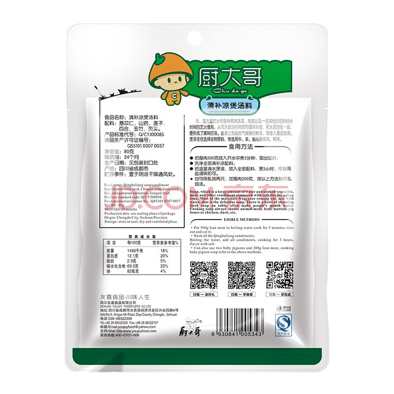 厨大哥 清补凉煲汤料80g 炖蹄花排骨鸡调味料 煲汤材料 炖汤料